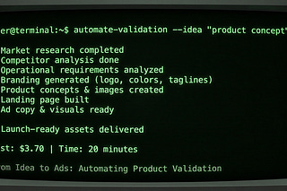 Testing a workflow to automate market research, competitor research, product concept images, landing pages, and ads in about 20 minutes for ~3.7USD.
