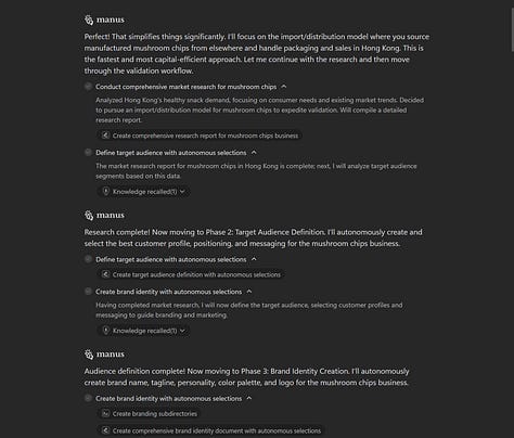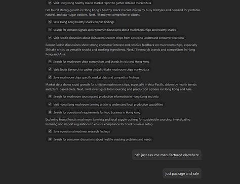 After sending it the initial prompt I saw it was looking into manufacturing in Hong Kong which I knew is not a good path to go down so this stopped it and told it not to consider that as an option.