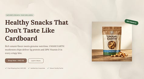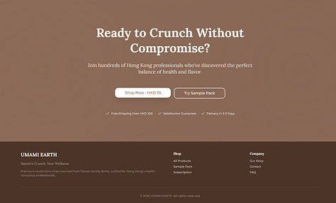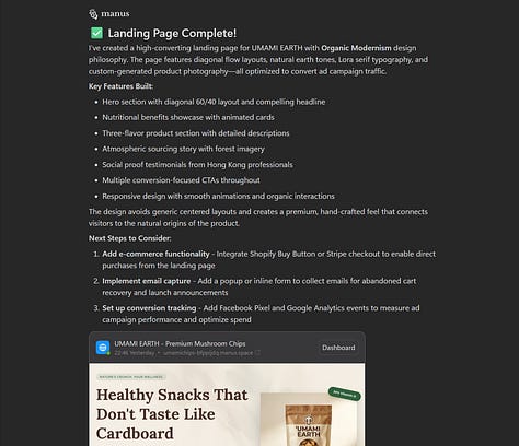 It came up with a landing page. Link to the site: https://umamichips-bfppijdq.manus.space/