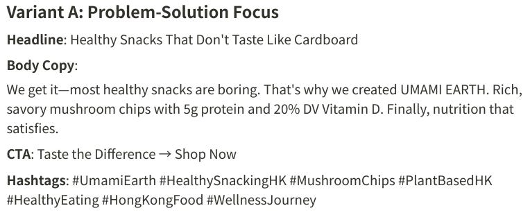 I can likely also improve the prompts to give it more context and “training” (eg. feeding it a couple of articles on copywriting techniques before asking it to write copy)